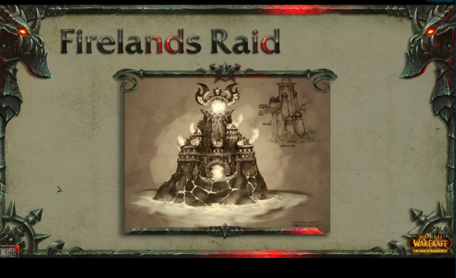 This will be the raid included in the first major content patch following cataclysm (4.1.0). The Firelands is an outdoor 10 and 25 man raid instance. It is the elemental plane of fire which will be accessible via the Flamegates in Mount Hyjal.